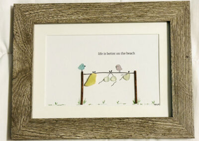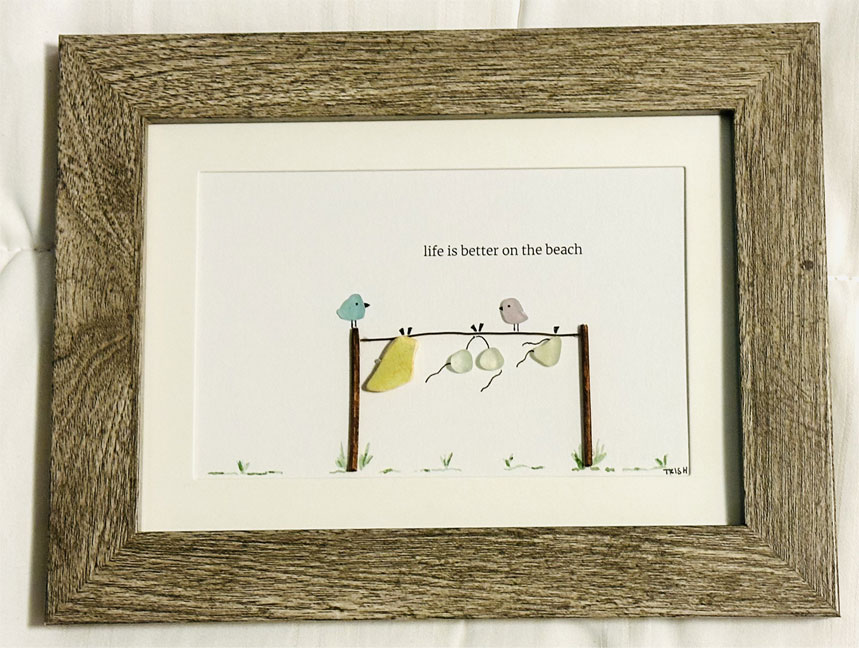 Trish Mireau is an artist local to Airdrie AB who specializes in Seaglass Art Pieces. All Seaglass and mediums used are authentic, being collected mostly from Canadian shorelines. With over 200 art pieces sold, Trish prides herself in the pieces she creates but is also equally passionate creating custom art pieces for her many clients upon request. She looks forward to helping you have a little magical piece of the ocean in your home.