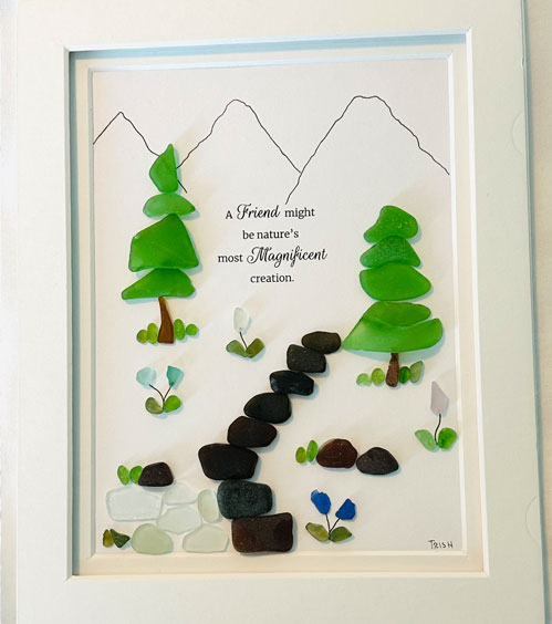 Trish Mireau is an artist local to Airdrie AB who specializes in Seaglass Art Pieces. All Seaglass and mediums used are authentic, being collected mostly from Canadian shorelines. With over 200 art pieces sold, Trish prides herself in the pieces she creates but is also equally passionate creating custom art pieces for her many clients upon request. She looks forward to helping you have a little magical piece of the ocean in your home.