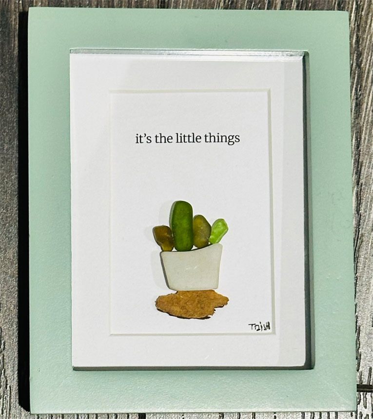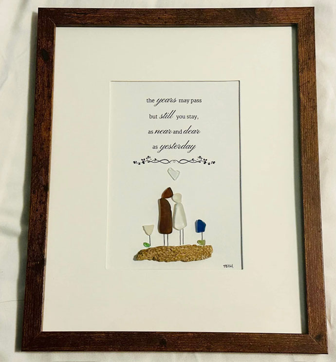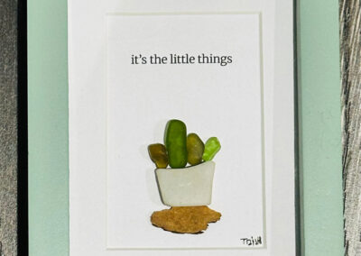 Trish Mireau is an artist local to Airdrie AB who specializes in Seaglass Art Pieces. All Seaglass and mediums used are authentic, being collected mostly from Canadian shorelines. With over 200 art pieces sold, Trish prides herself in the pieces she creates but is also equally passionate creating custom art pieces for her many clients upon request. She looks forward to helping you have a little magical piece of the ocean in your home.