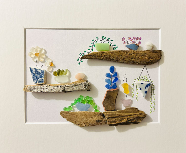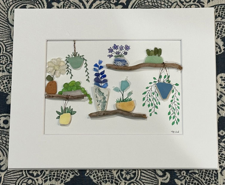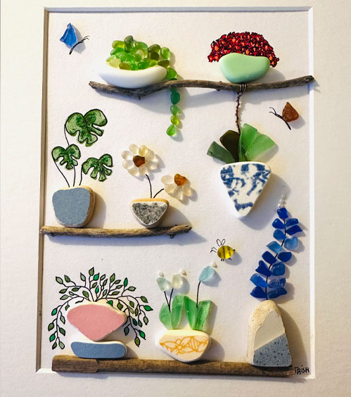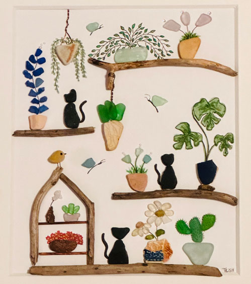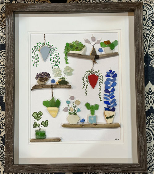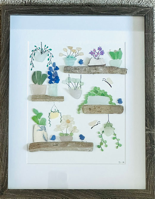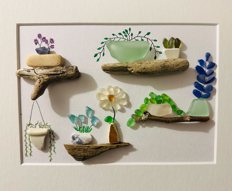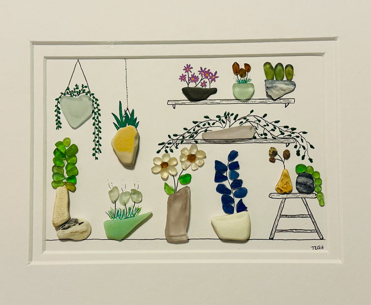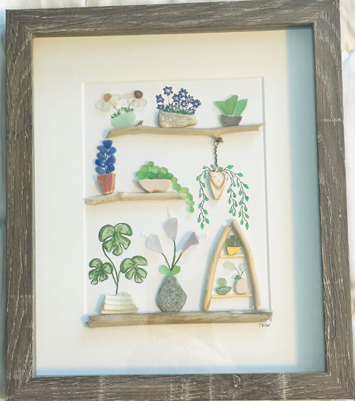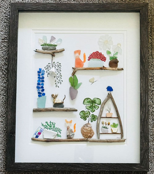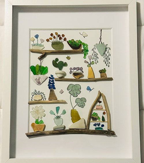 Trish Mireau is an artist local to Airdrie AB who specializes in Seaglass Art Pieces. All Seaglass and mediums used are authentic, being collected mostly from Canadian shorelines. With over 200 art pieces sold, Trish prides herself in the pieces she creates but is also equally passionate creating custom art pieces for her many clients upon request. She looks forward to helping you have a little magical piece of the ocean in your home.